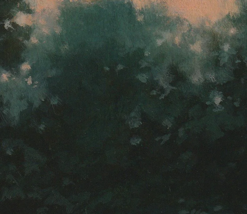 “These are ubiquitous. I have a dog and they are a great idea, like most bins. I find their incongruity in the landscape both a little depressing and comical. I often like to paint very ordinary contemporary things in an old fashioned, sometimes romantic way. It’s almost pretty. Fragonard’s swing might be behind the trees!”